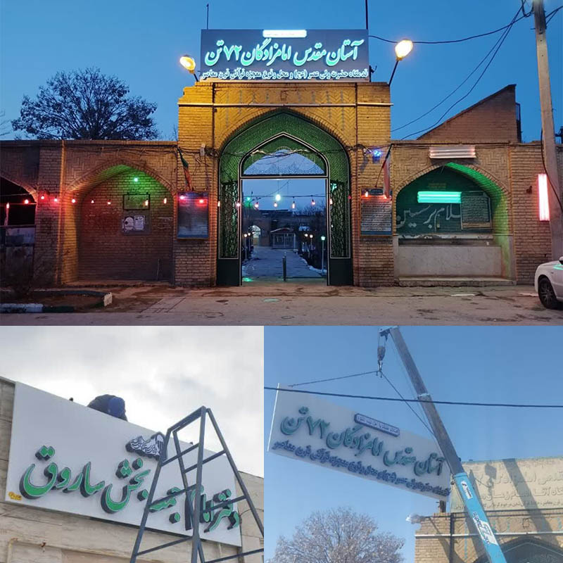 نصب تابلوی معرفی آستان مقدس امامزادگان ۷۲ تن و دفتر امام جمعه بخش ساروق در راستای زیباسازی معابر سطح شهر و ارتقای کیفیت سیما و منظر شهری ، به همت شهرداری و شورای اسلامی شهر ساروق ، در روز بعثت پیامبر گرامی اسلام(ص)